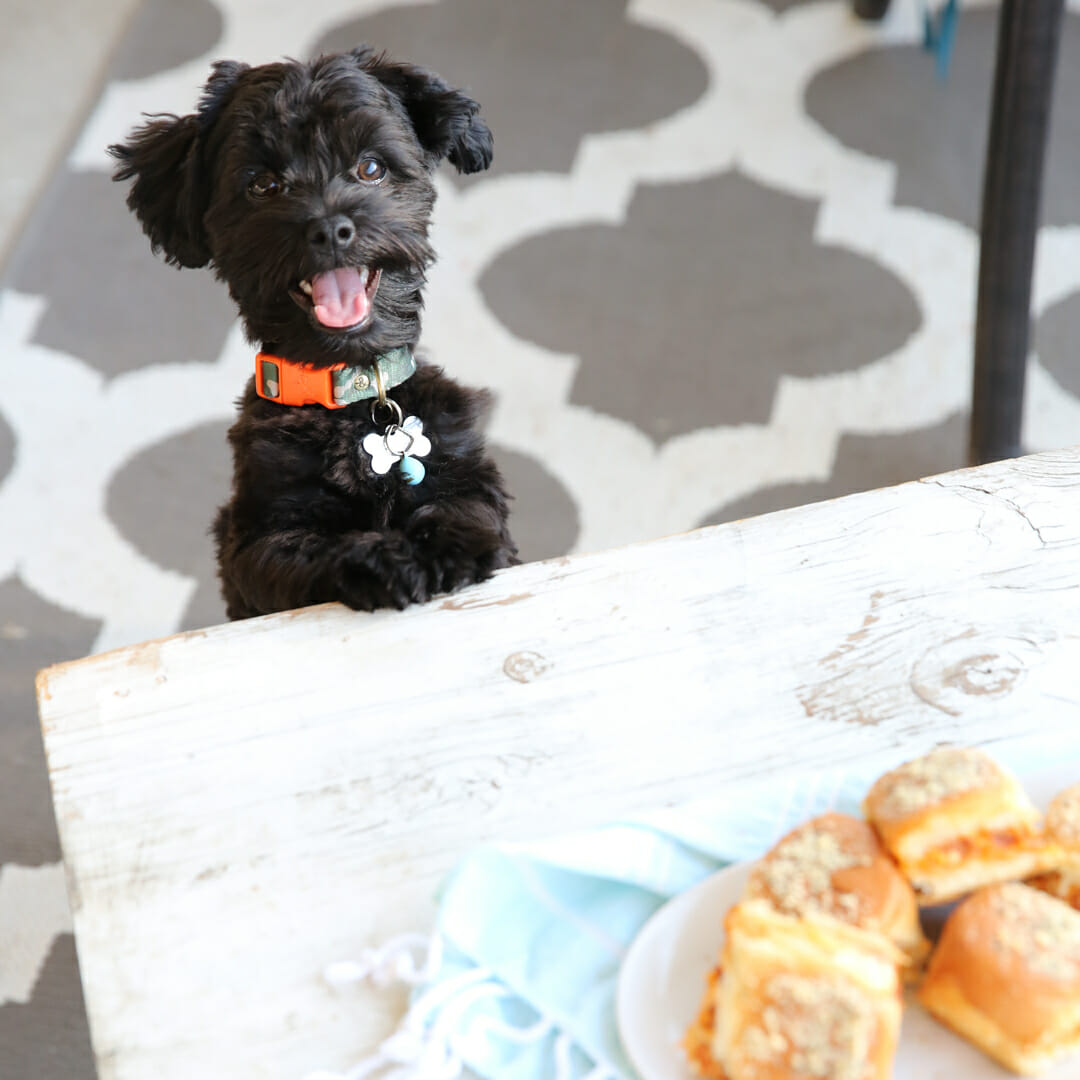 Side note: I always do my final recipe shot outside on my back porch on a low table. This is what happens every time now, lol.
