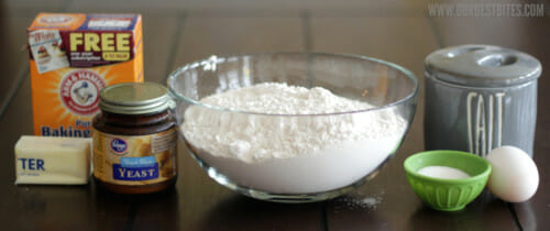You’ll need all-purpose flour, kosher salt, water, yeast, an egg yolk, and melted butter. You’ll also need baking soda for the soda water bath.