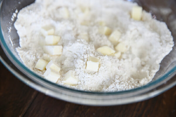 Then you’ll want to cut up some very cold butter (straight from the fridge) into small chunks.