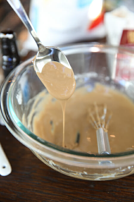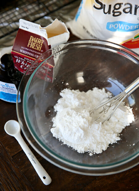While the scones are cooling on a rack, mix up a quick glaze. All you need is some powdered sugar, a little maple extract, and a little cream.
