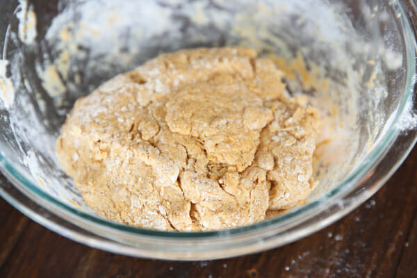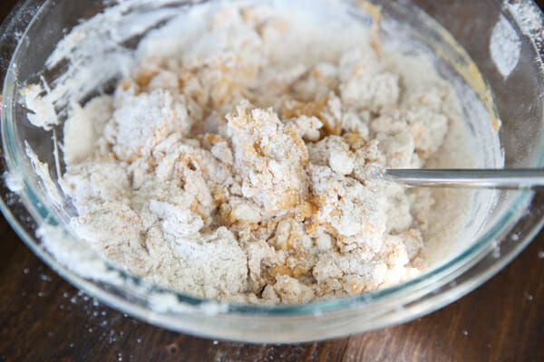 Use a fork to gently pull the dough together. Don’t use any kind of mixer here; it just take a few seconds to mix up the dough by hand.
