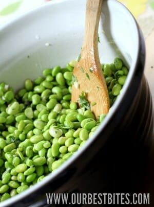 Sara and I recently got to try this salad straight from the source (more about that in a few weeks, we hope!) and I was completely expecting not to love it. I kind of thought I didn’t like edamame because every time I’ve had it, the beans were mushy. What I discovered is that I love edamame as long as they’re cooked JUST until they’re plump and bright green. In fact, if you use frozen edamame, they’ve almost always been blanched so you even just run them under some warm water or, in this salad, just toss the beans with the hot quinoa.