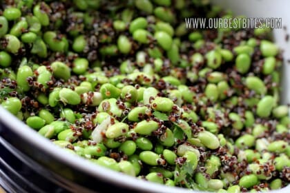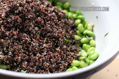 I know. Edamame? Quinoa? Are you really at Our Best Bites? You know you are because the dressing has cilantro, garlic, and lime juice.