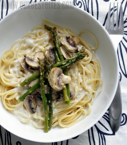 Roasted Asparagus and Mushroom Pasta in Lemon-Cream Sauce