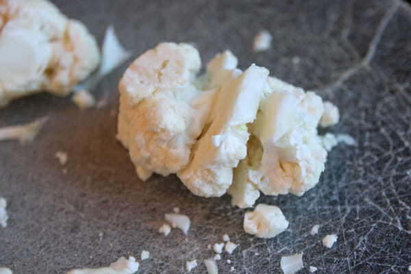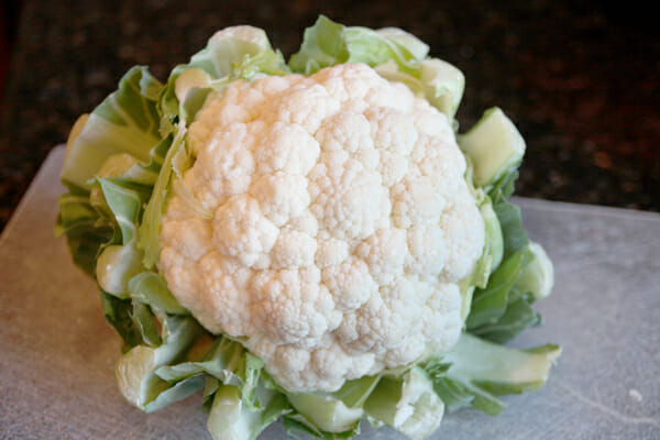 So here’s a great, quick and easy side dish recipe. Start with a head of cauliflower.