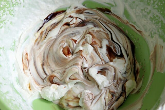 Stir a few times so the whipped cream is streaked with caramel and chocolate but not totally mixed.