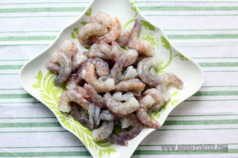 I photographed a nice interesting thorough tutorial about how to peel and devein shrimp, but then I didn’t want to talk about de-pooping shellfish in my recipe post, so I’m going to direct you over to the lovely Elise at Simply Recipes.