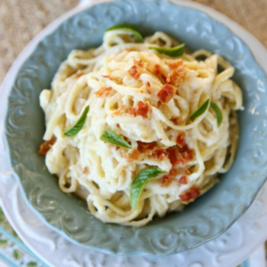When I’m trying to eat healthy I always make a lot of dinner salads and my kids get sick of them. This would be a great thing to throw in the rotation so they get pasta and I can have mine with zoodles and still be on my plan. I’m adding cauliflower to my shopping list right now!