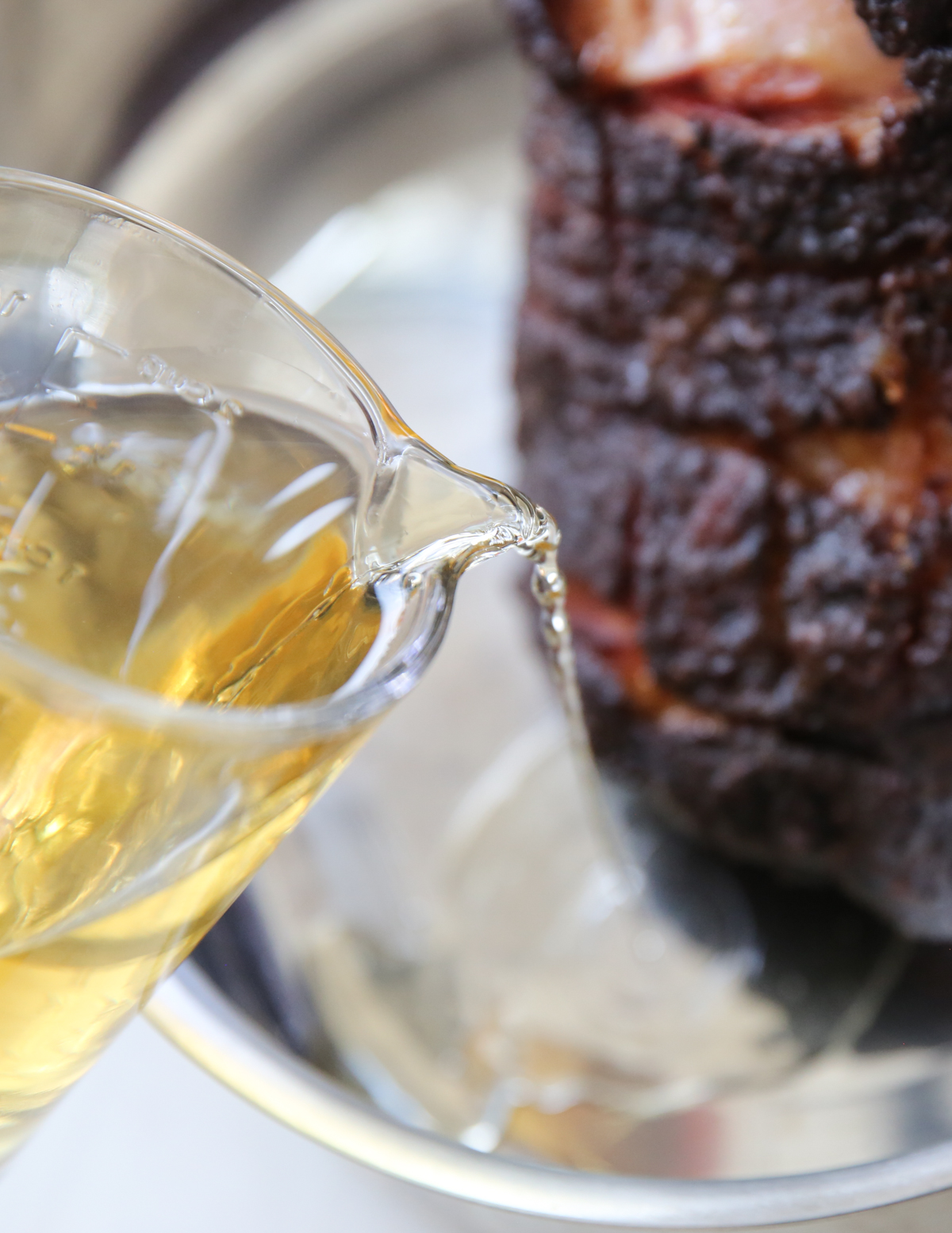 I first had smoked pulled ham at a BBQ restaurant. I actually thought I was eating pulled pork at first because I had no idea ham could be cooked in a way that would allow it to shred like pork and be so flavorful. I knew I wanted to try it at home. For the basic process, I used the formula I learned from this article by Brad Prose. BBQ guru Susie Bulloch uses the same method with an apricot bbq glaze, which also sounds delicious. I wanted to make a quintessential Easter ham, so for my version I’m using a riff on our very popular Orange and Brown Sugar Glazed Ham. You can easily use this same method and switch up the rub and the glaze/sauce with any flavors you like. Once you learn to cook ham like this, you might not go back to any other method!