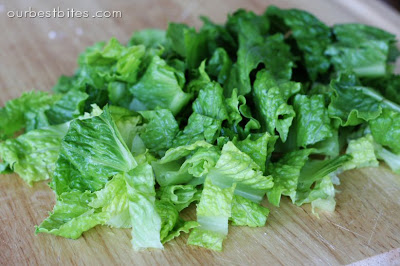 Tear up some cold, crisp romaine and then we’ll top it with all kinds of yummy stuff.