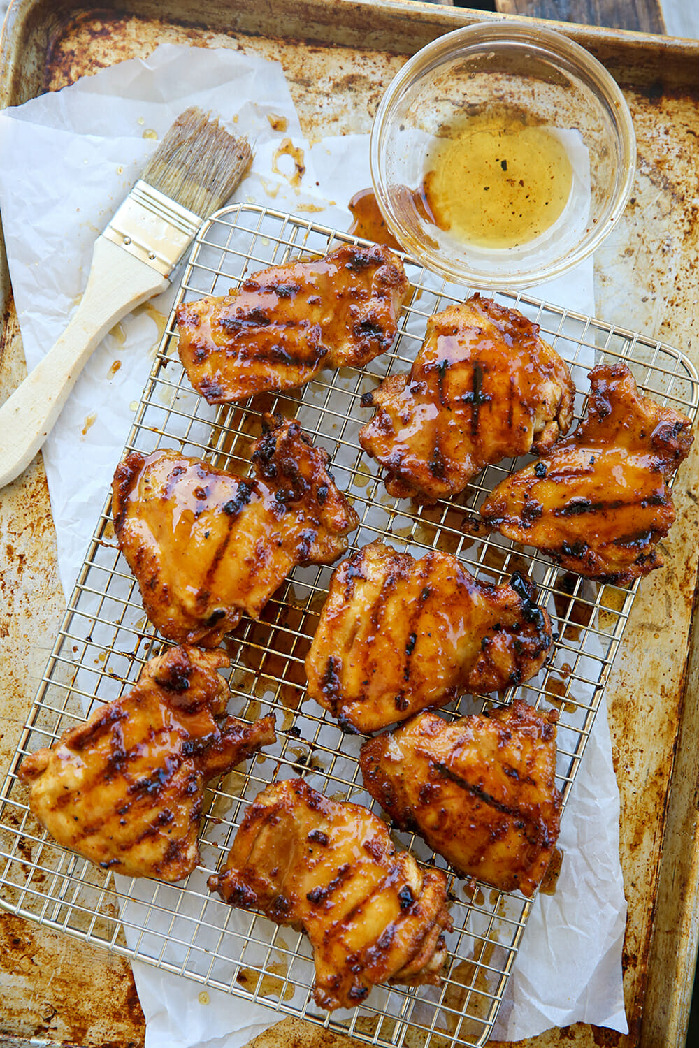 They’re spice-rubbed chicken thighs, grilled to perfection and then drenched in the most amazing honey-apple-cider-vinegar glaze. I decided to marry these two recipes together and it proved to be a good decision.