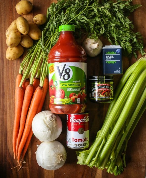 - 3 cups vegetable juice cocktail like V8 or Bloody Mary Mix