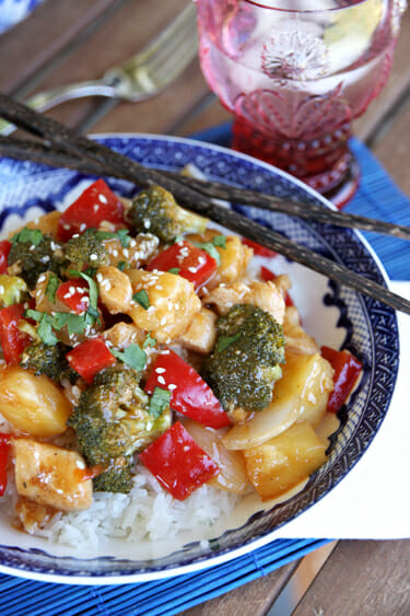 This looks amazing!! My weirdo husband doesn’t like pineapple so I will save that for me to snack on later (will still use the juice though). I have a bag of frozen diced chicken in my freezer that’s just dying to be used in this. Hopefully I’ll get to make it next week 😀