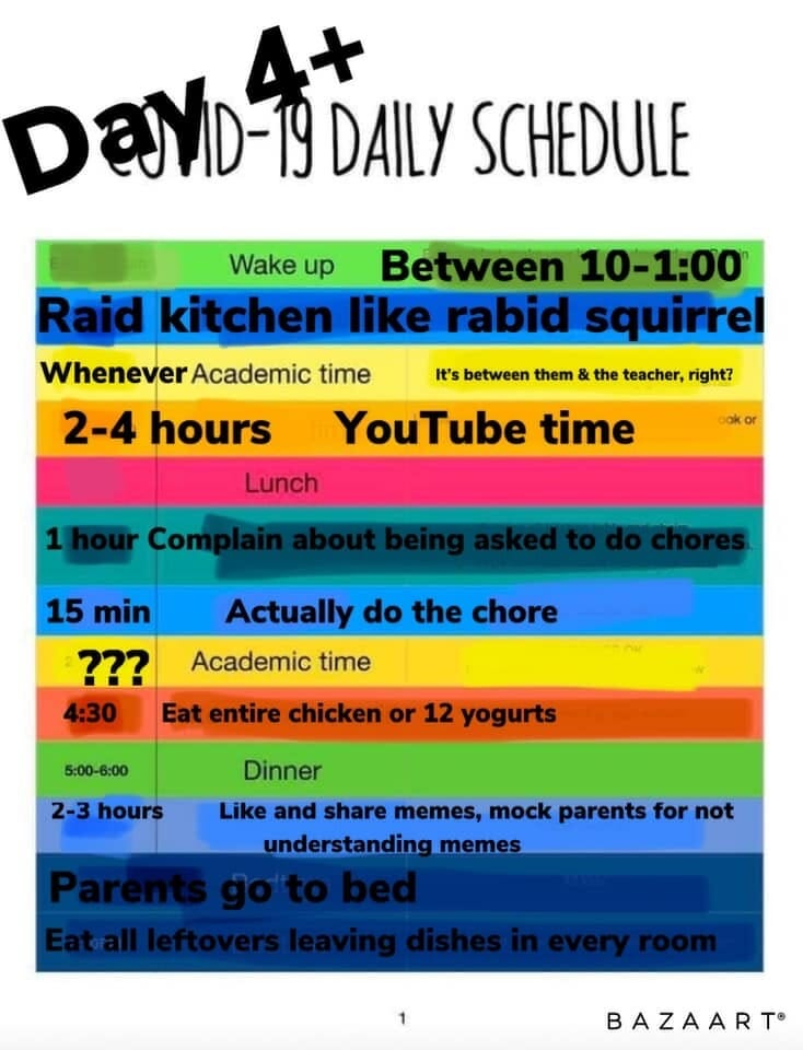 Whoever started all this talk of “working remotely” when you have your kids home unexpectedly for a month (or longer) obviously has never been a parent! I’d like to propose an edit for that.