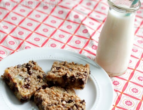 These Toffee Chocolate Chip Bars are super easy and you may not even need a trip to the store to pull them together based on what you’ve got in your pantry. A buttery crust is topped with chocolate chips, toffee bits, chopped nuts, and sweetened condensed milk, resulting in a delicious, gooey cookie bar that’s perfect for potlucks, gifting, or a quick weeknight treat!