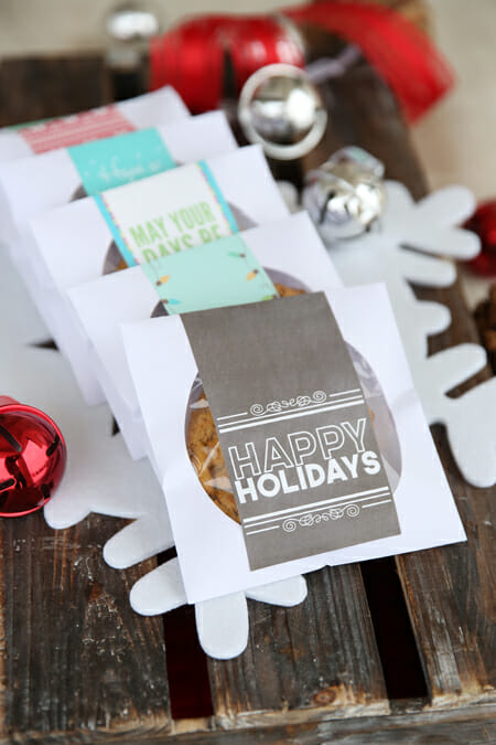 How cute are those? Don’t answer that, because they’re about to get even cuter. At the bottom of this post you’ll find a downloadable file for these adorable labels. You can use double-stick tape, or do what I did and print them on sticker paper (available at office supply stores, my pack was actually labeled “shipping paper“).