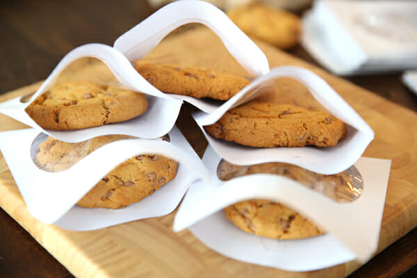 Sure enough! Perfect Fit, and boy do they look cute. You can buy packs of these envelopes for ridiculously cheap, and even in fun colors. Slip your favorite cookies right in there.