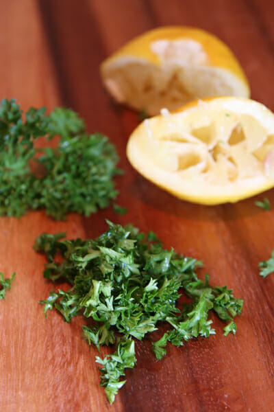 After it heats and thickens, turn the heat way down and add a little fresh parsley and lemon juice. I kept the lemon juice in the written recipe minimal, simply enough to brighten the flavor, but you can absolutely add more to taste. When I make it, I add quite a bit more. Like sometimes the whole lemon. But you should know by now that me and lemons have a thing.