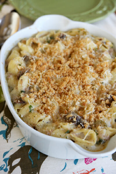 I love tuna noodle casserole! Of course, I wasn’t a fan of my mom’s growing up, but I like it much better now. LOL Luckily, my kids like mine too. 😉 My husband would definitely appreciate the addition of mushrooms!!