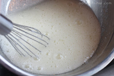 Your mixture will be nice and frothy looking. If you don’t have a thermometer, just use your fingers to see if the sugar is dissolved. If it is, then you’ve cooked it long enough. It should only take 3-5 minutes.