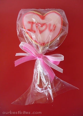 Packaging: Leave the pops plain, or wrap in cellophane. I popped the cookies in cellophane treat bags (you get 50-100 bags for just a couple of bucks) and tied ribbon around the stick. Easy breazy and oh so cute! Perfect for handing out at the office, or to friends or neighbors. Do they even let you give out home made treats at school? Probably not. It’s too bad because all the other kids in your child’s class would think you were the bomb.