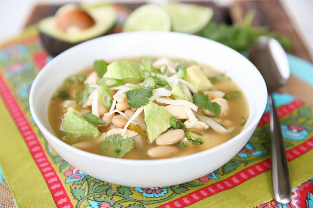 I have a lot of favorite soups, but most people who know me know that this White Chicken Chili is at the top of my list, partly due to the fact that I make it from things my pantry very rarely runs out of, so I end up making it a lot when other meal plans get tossed out the window. It’s really fast, and really easy, and it’s major comfort food for me. I often make a pot at lunch time and just keep it warm until dinner, grabbing a bowl or two in between! Kids love it because they can put chips and cheese on it. Heck, I love it because you put chips and cheese on it.